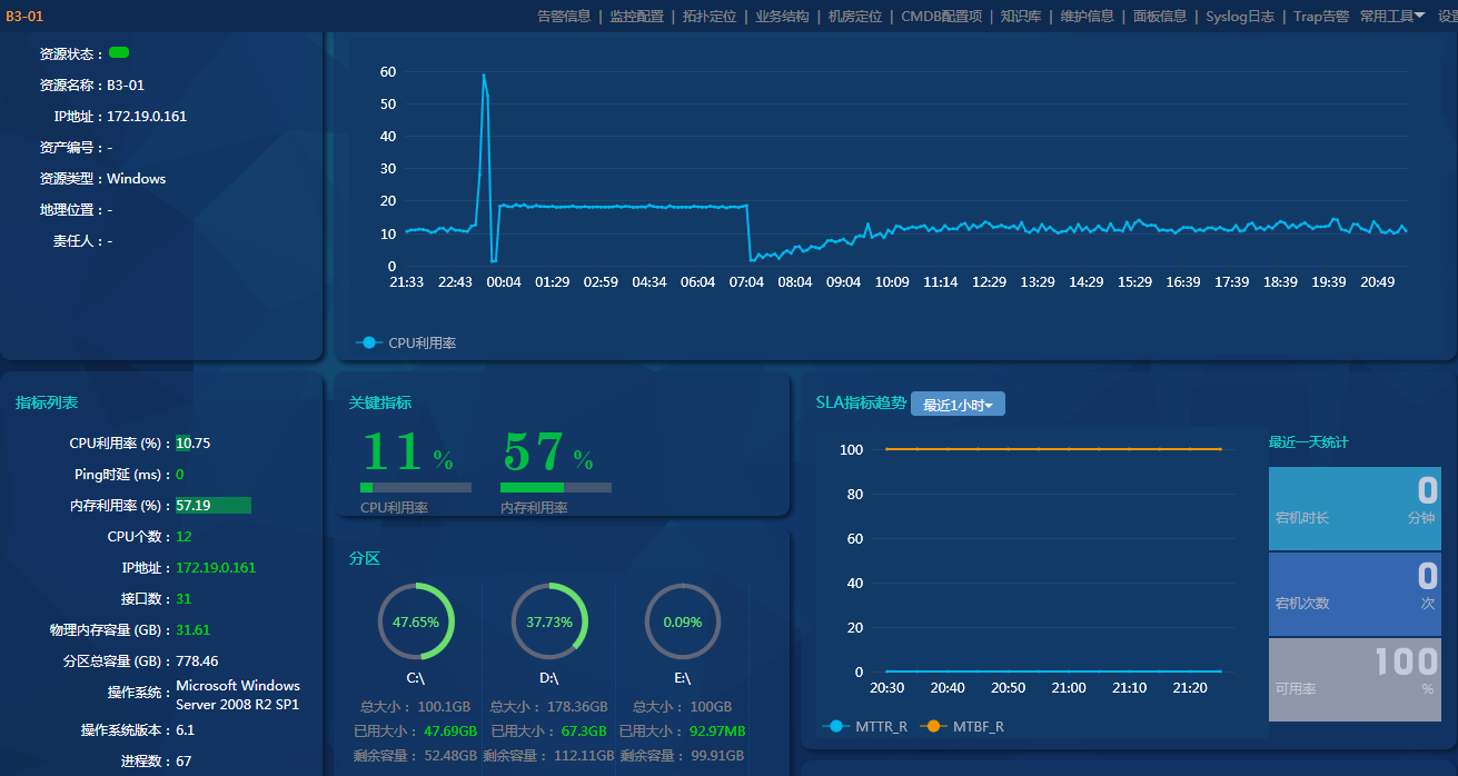 (1)设备监控平台RIILBMC。RIIL-BMC IT运维管理系统对各类设备和系统进行统一监控管理,对产生的事件形成有效的告警信息,结合RMC自动生成故障处理工单,通过APP或短信发送给管理人员,可在管理系统对故障进行定位处理,并设立了工单跟进、反馈处理机制。由此,管理人员可实时掌握网络设备的运行状态,为教学、科研提供方便。