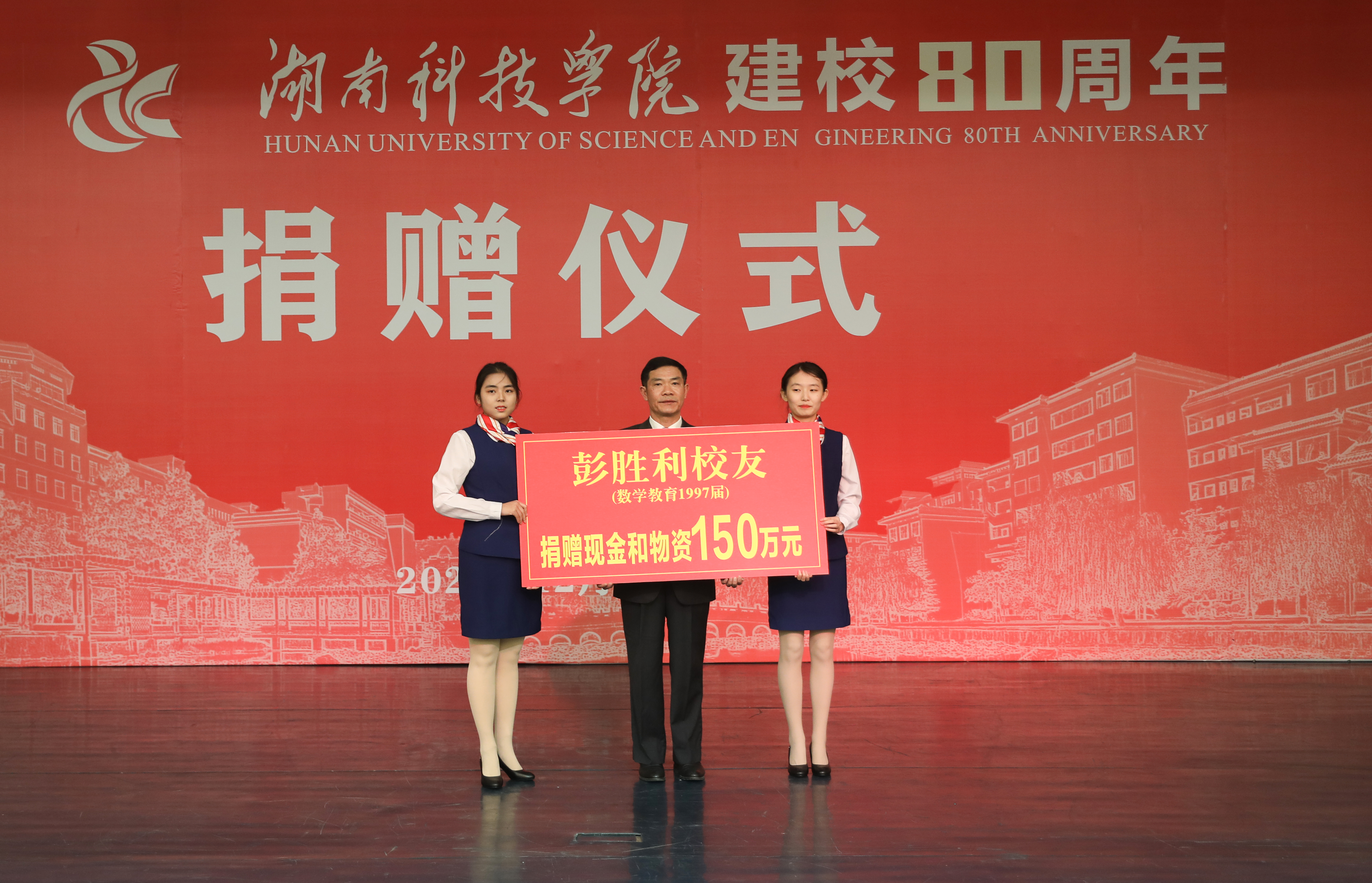 李钢代表学校向在座的永州区县市领导、嘉宾及校友致以衷心感谢和诚挚敬意,希望藉由学校建校80周年为契机,与地方政府全面深化校地融合,开启校地合作新起点;与各友好企业全面深化产教融合,共同发展,持续共赢。同时,他表示,学校必定不负期望,利用好每一份捐赠资金,将党委政府、广大校友、社会各界支持学校建设和发展情意的表达,转化为推动学校高质量发展的磅礴力量,转化为建设现代化新湖南、现代化新永州的强大动力。