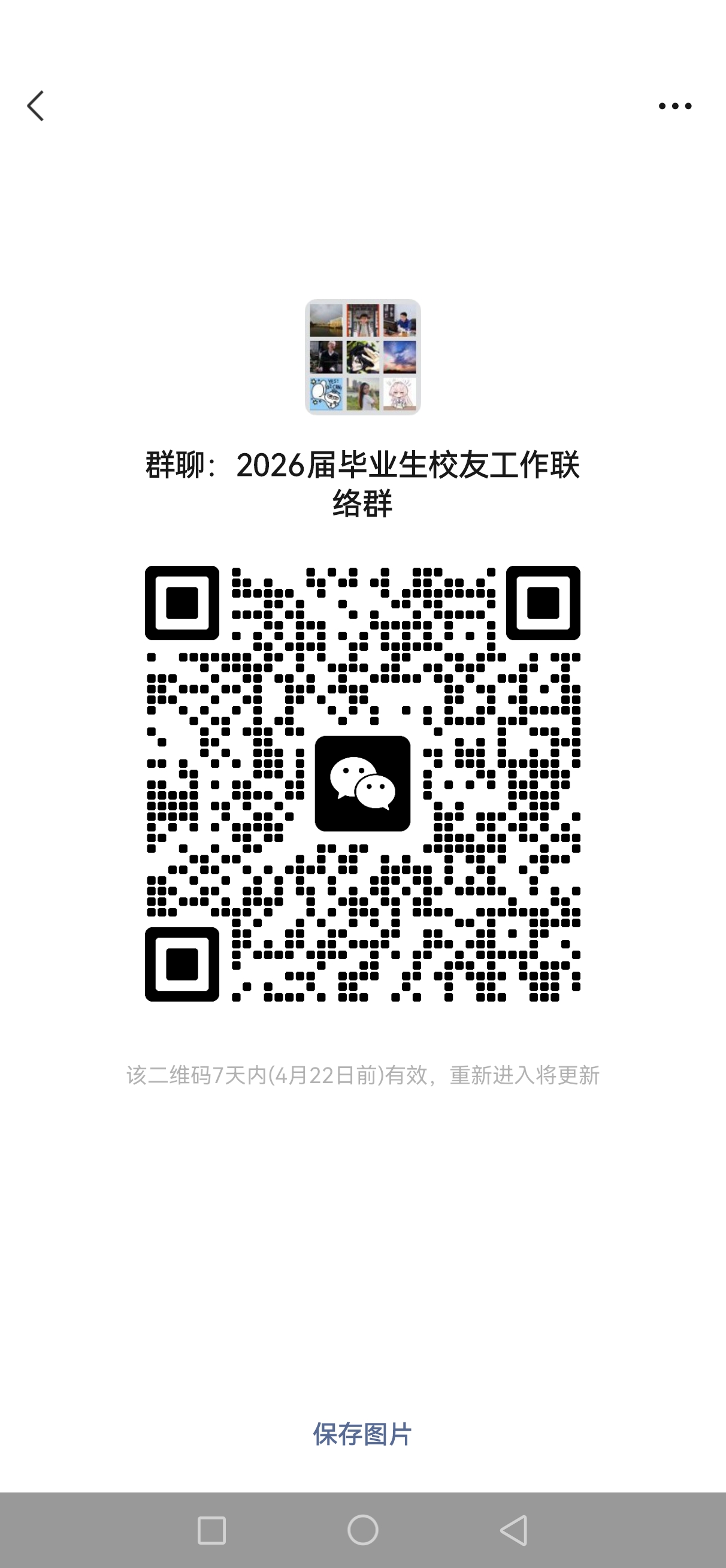 1.2026届毕业生校友工作联络员采用自荐和组织推荐相结合的方式。每班推荐1-2名联络员,请各学院做好相关遴选推荐工作,并于4月15日前填写《Beat365唯一官方网站2026届毕业生校友工作联络员信息表》报送至校友联络中心519办公室,电子版发送至邮箱:67586889@qq.com,请各学院毕业班辅导员于4月22日前微信扫描附件中的二维码,加入“湘科院2026届校友工作联络员群”,并通知学院联络员于4月22日前扫码进群,并按“学院-班级-姓名”的格式修改群昵称。
