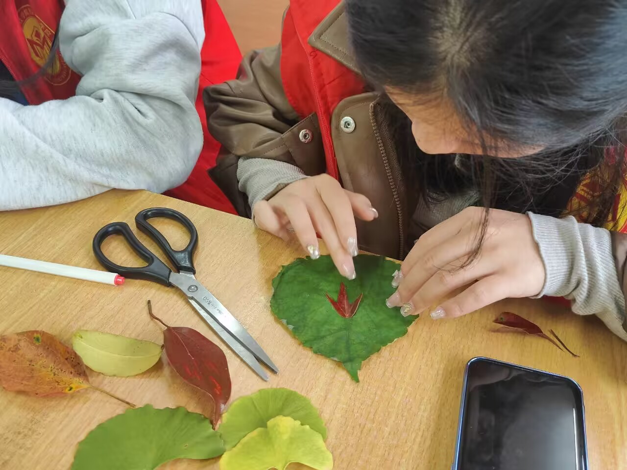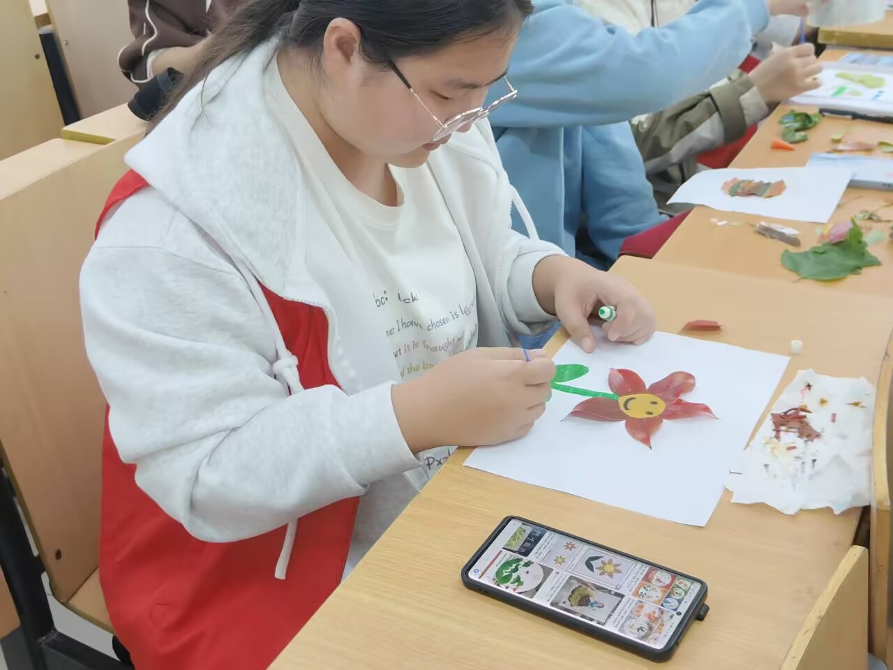 本网讯(通讯员 何文博 蒋思言)霜降即将来临,为了让同学们切实感受到秋天带来的乐趣,10月19日下午,学院青年志愿团在致远楼205开展“邂逅节气,落叶相伴”主题志愿活动。