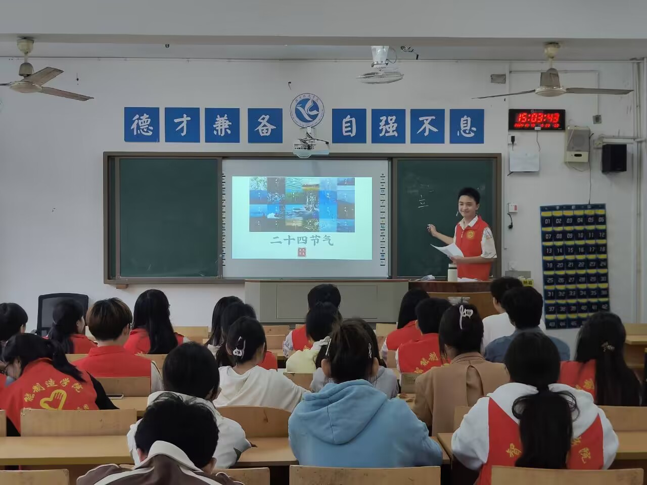 活动由青志团素质拓展部组织开展,向同学们传递了二十四节气的知识,让大家在霜降来临之际也可一叶知秋,感受节气的魅力。
