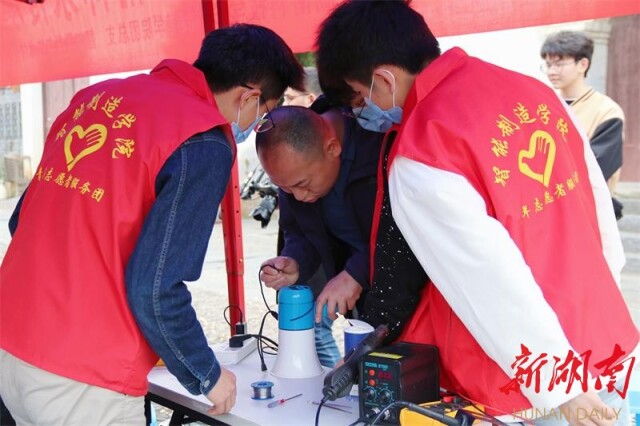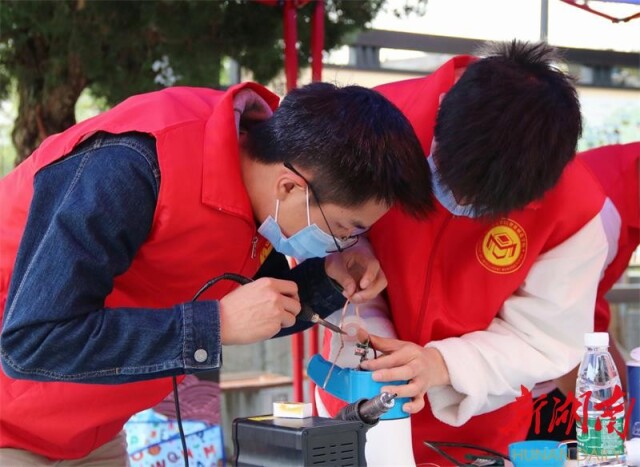 3顶帐篷、6张桌椅,还有提前置办好的电阻、电容、发热管等维修用具,青年志愿者们正在有条不紊的摆摊设点。