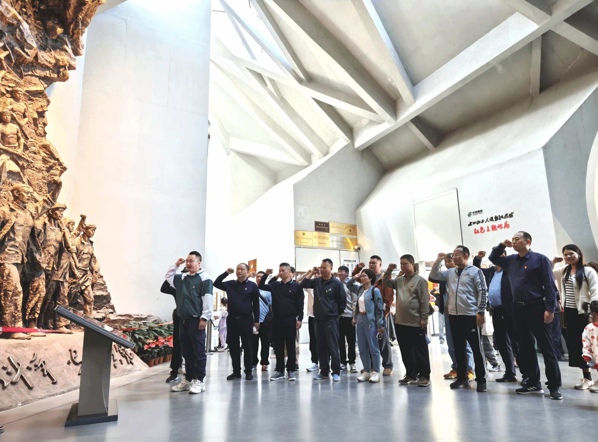 在水口山工人运动纪念馆,全体党员面对大型工人运动浮雕重温了入党誓词,随后在讲解员的带领下参观了纪念馆内“耿飚生平业绩”“水口山工人运动历史”“水口山矿冶史”三个陈列室。党员们认真学习了蒋先云、宋乔生、耿飚等老一辈无产阶级革命家的英雄事迹,重温水口山工人运动艰苦卓绝的发展历程。一张张珍贵照片、一件件红色文物、一座座逼真雕塑、一个个感人故事,使党员们真切感受到了烽火岁月中革命先烈们矢志不渝的崇高理想信念。