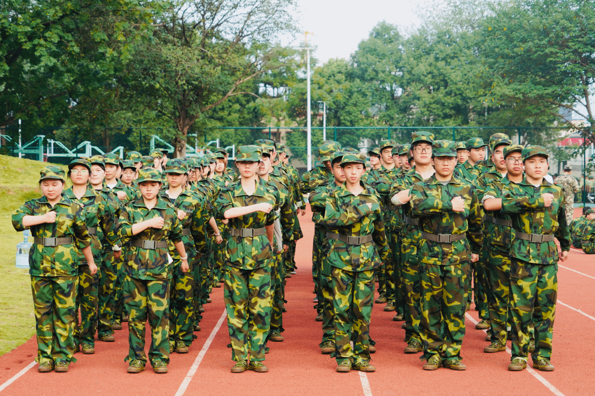 训练场上,同学们迎着晨曦集结,伴着晚霞收队。汗水浸透了迷彩服,却浇不灭青春的热情,从最初的步伐凌乱,到后来的队列严整;从口号的参差不齐,到后来的声震云霄,每一个进步都源于日复一日的坚持,教官们严格要求,纠正每一个动作细节。