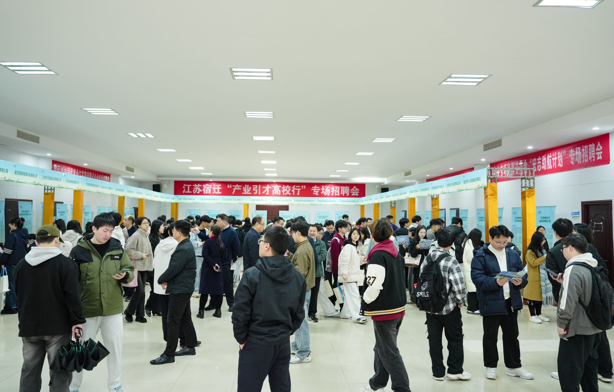 在专场招聘会上,宿迁市37家优质用人单位携675个优质岗位现场揽才,岗位覆盖新能源、新材料、高端纺织等宿迁特色优势产业。我校毕业生们手持简历与企业招聘负责人面对面交流,详细咨询岗位要求、薪资待遇、职业发展等问题,企业方则诚意满满、耐心讲解、为学子们答疑解惑。