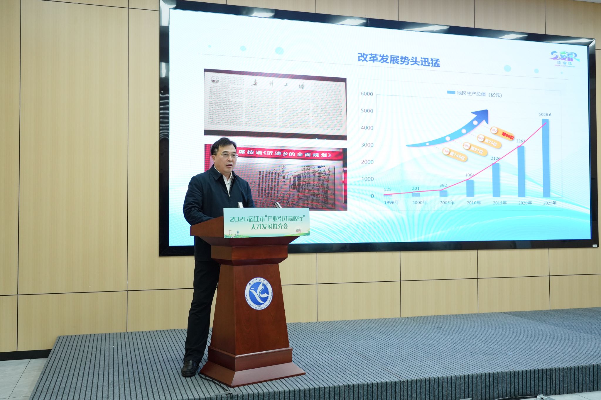 活动分为人才发展推介会和专场招聘会两个阶段。在推介会环节,现场播放了宿迁人才工作宣传片《“迁”金之约》,全方位展现了宿迁的产业优势与引才诚意。